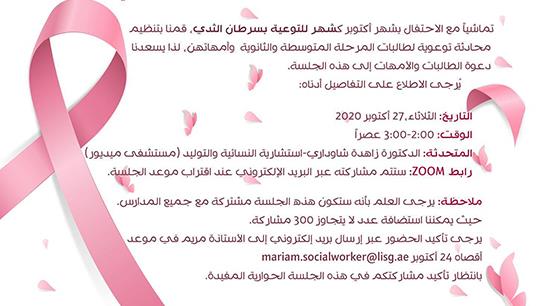 نظمت مدرسة ليوا الدولية للبنات اليوم الوردي للتوعية بسرطان الثدي وأقيمت محاضرة بالتعاون مع الدكتورة ضياء من مستشفى ال ن م سي بعنوان ( أنواع السرطانات وكيفية الوقاية منها ) ، كما ساعدت كلا من فريق ا ...